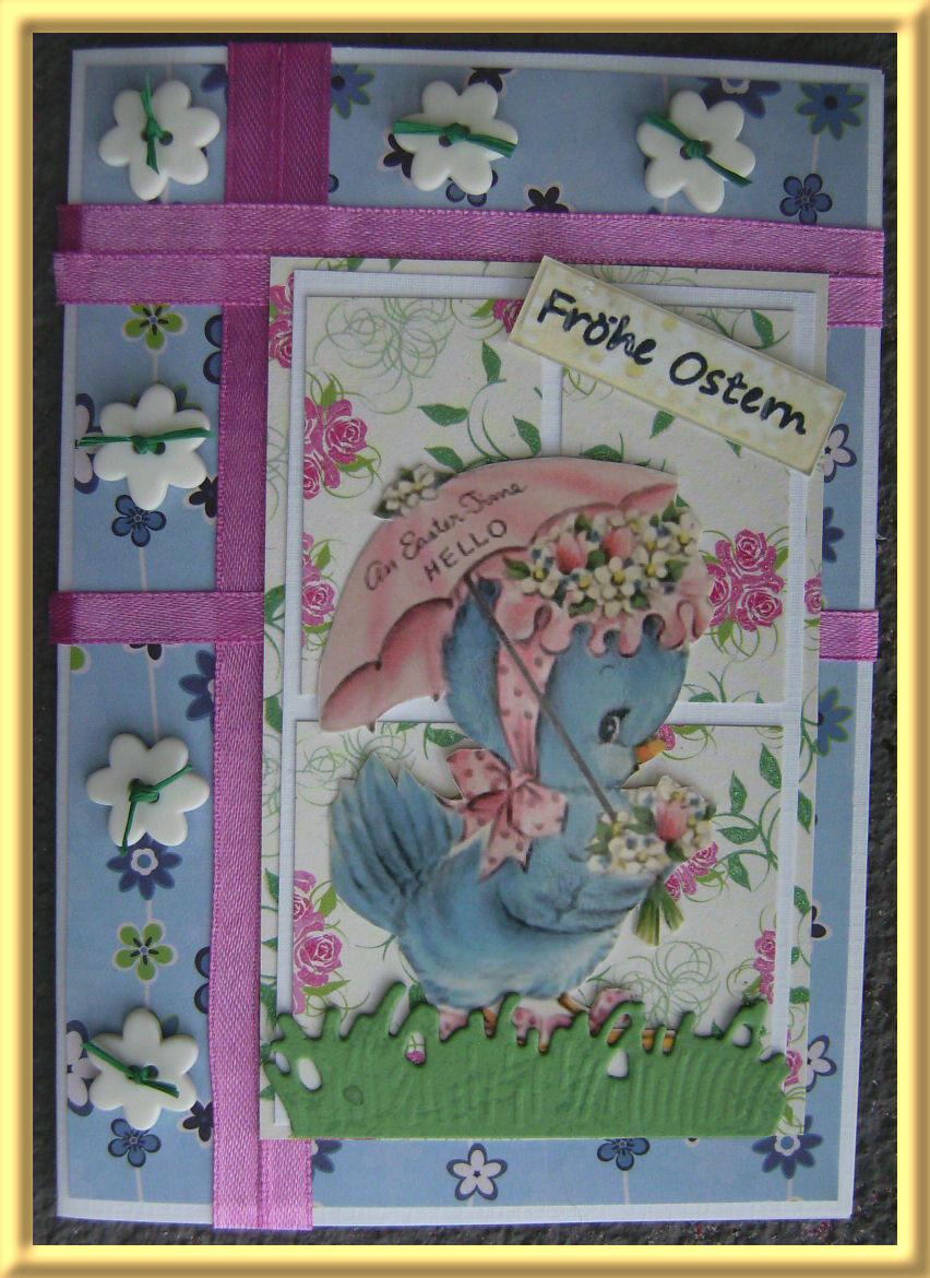 Nu is alles al gepoetst, alleen nog sigaretten rollen en dan heb ik weer vrij de rest van de dag. Kan ik lekker nog eens in mijn boekje kijken voor nog eens een ander kaartje te maken. Ik zou ook nog rouwkaarten moeten maken voor in mijn doos, maar die zijn zo aardsmoeilijk vind ik. Eens proberen of ik kaarten kan maken zoals Christine dat altijd doet. Ik vind ze zo mooi, maar kan het zelf niet. Dus toch eens goed spieken hoe ze dat toch maar steeds doet. Maar nu dan toch maar naar de volgende paas kaart :-)